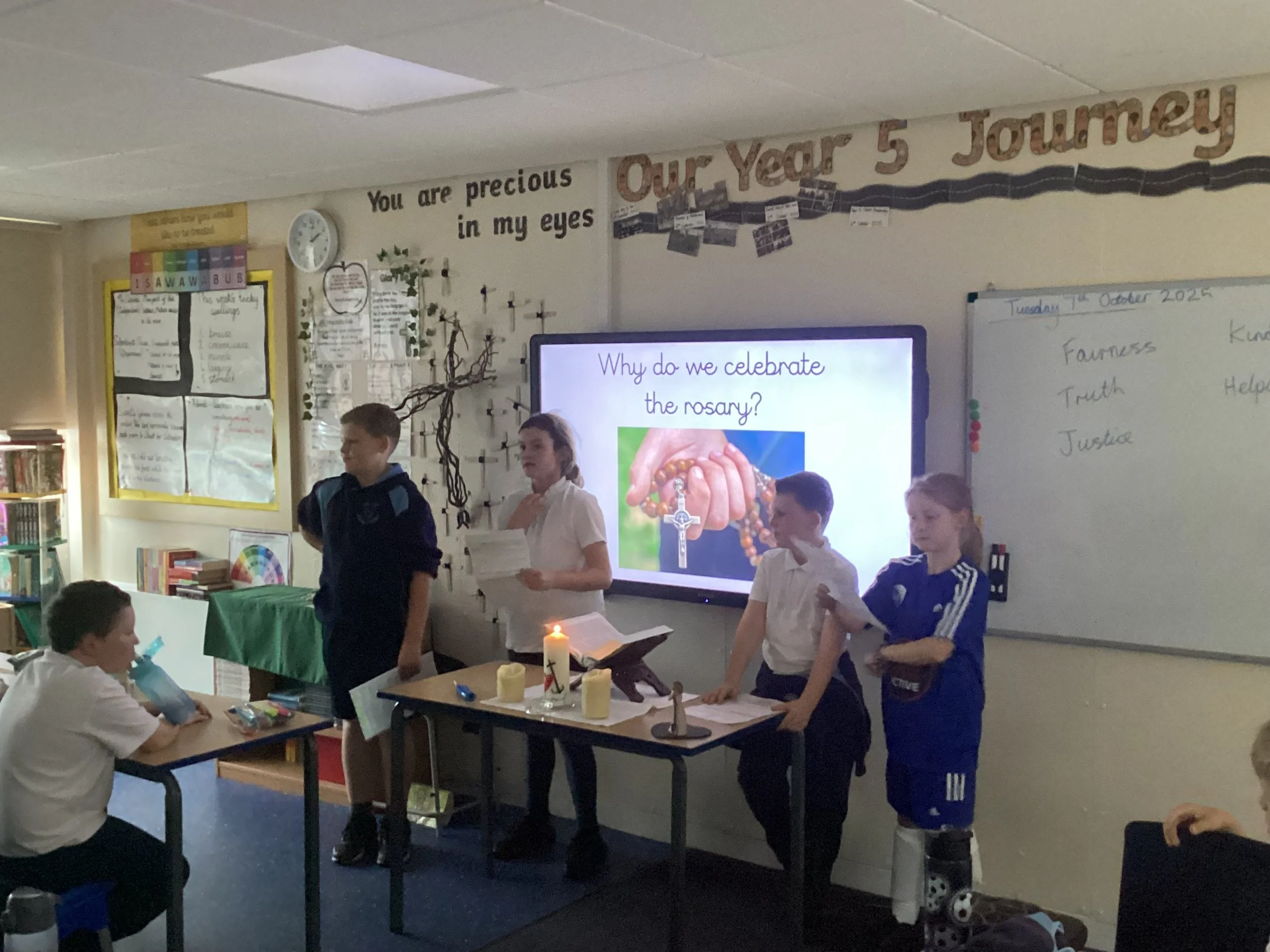 It has been a very reflective week in Year 5, especially in our worships as we celebrated the rosary on Tuesday on ‘one million children day’. It was lovely to see so many of the children’s rosary beads as we came together in worship on this special day. In this weeks gospel, we looked into the story of how Jesus healed the leaper and how he had complete faith and trust in him to carry out such a miracle. We then linked this to gratitude and the classed shared what they are grateful for in their life.